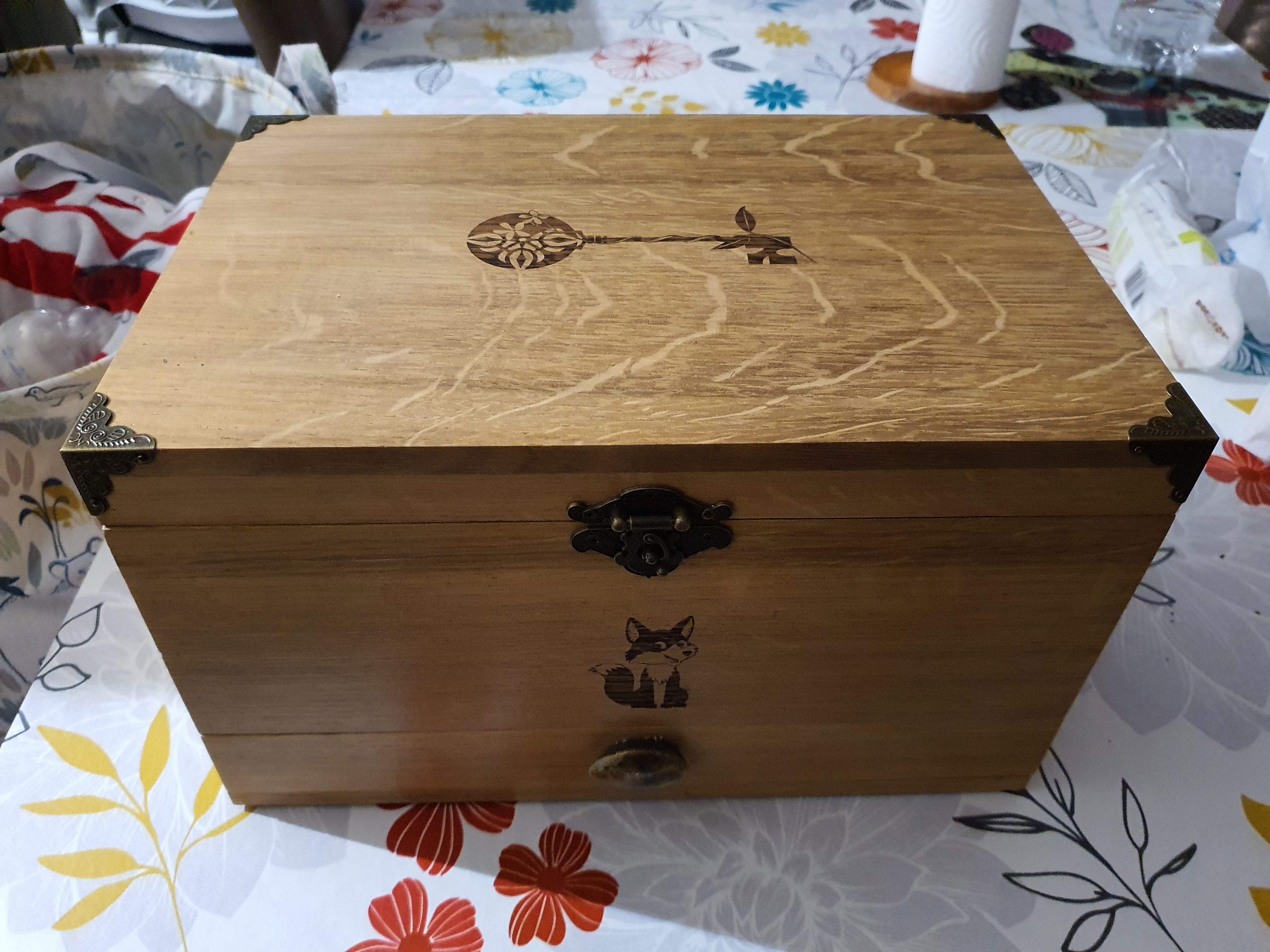 Un super coffret magnifique pour y mettre tout ce qui nous tient à cœur, réalisation artisanale, gravure au choix et très bien réussi. La clé usb qui sort de l'ordinaire pour y mettre notre numérique, super idée et un vrai plus ! Merci à vous pour notre coffret. Mr LOOSE Antonin
